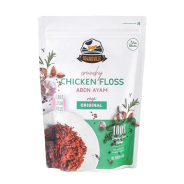 Grandville Abon Ayam Crunchy merupakan abon ayam dengan tekstur Crunchy yang diolah dengan menggunakan kualitas daging ayam terbaik serta bahan-bahan yang alami tanpa menggunakan MSG dan pengawet sehingga cocok untuk menjadi makanan pendamping si Kecil (MPASI).