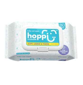 Hoppi™ Baby Wet Wipes is a 99% water wet wipes specially designed for the newborn & sensitive skin babies. It is softer, thicker, larger, and more durable than the average baby wet wipes in the market, while adhering to the highest international standards.