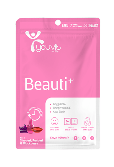 Youvit Beauti+ mencegah penuaan dini, menguatkan rambut, menyehatkan kuku dengan bentuk gummy dan rasa berry yang enak