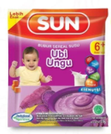 Sun Bubur Sereal Rasa Ubi Ungu untuk bayi 6 bulan ke atas, dengan tekstur lembut, mengandung gizi lengkap seimbang untuk tumbuh kembang optimal Anak.