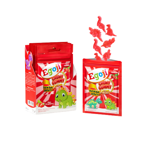 Egoji gummy merupakan suplemen Multivitamin plus Gojiberry, dengan bentuk gummy Dinosaurus yang enak Mengandung pemanis gula dan sari buah alami yang tidak merusak gigi.