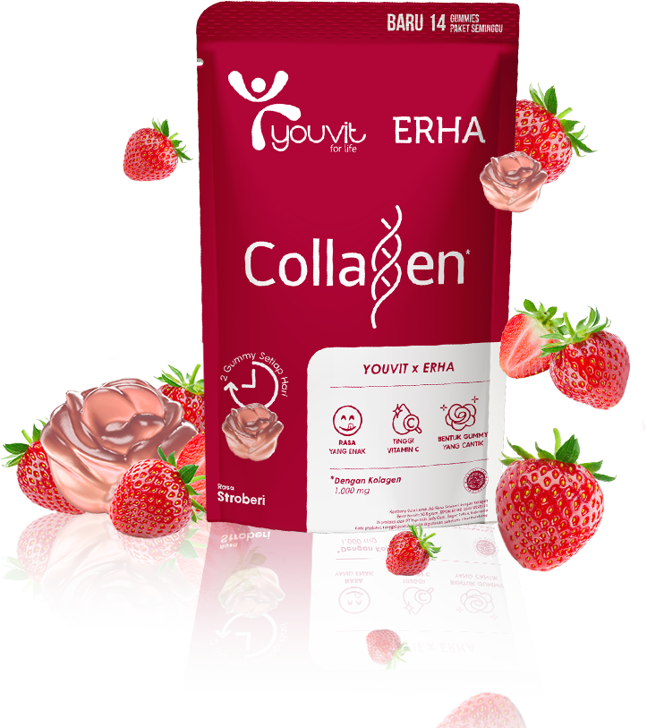 Youvit Collagen untuk meningkatkan elastisitas kulit, menutrisi kulit dari dalam dan menyamarkan garis halus untuk kamu perempuan aktif 25 tahun ke atas.