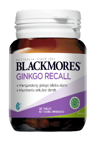 Blackmores Ginkgo Recall mengandung ginkgo biloba alami untuk membantu sirkulasi darah.