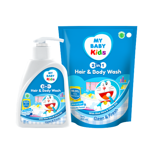 Hair & Body Wash adalah sabun sekaligus shampoo dengan formula lembut di mata dan keharuman yang tahan lama, dibuat dari bahan alami mampu membersihkan rambut dan dan badan anak dalam satu langkah.