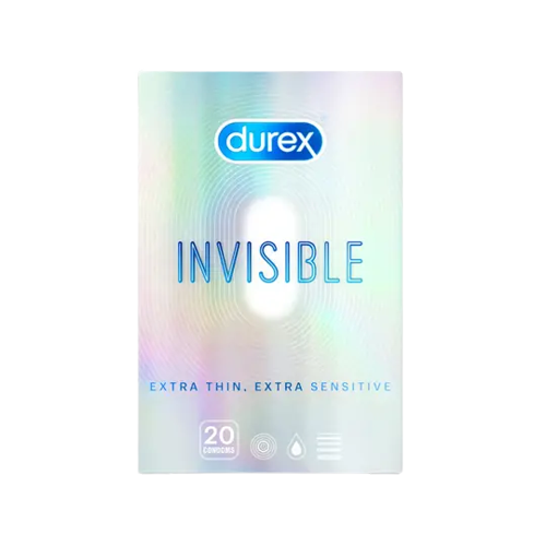 Kondom Durex Invisible merupakan kondom pria dengan ekstra pelumas yang berfungsi menambah sensitivitas dan kepuasan selama berhubungan intim.