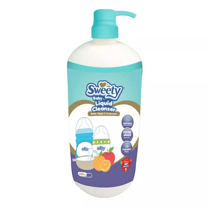 Sweety Baby Liquid Cleanser for Bottle, Nipple & Accessories di formulasikan secara khusus untuk membersihkan perlengkapan bayi dengan bahan alami, food grade yang aman untuk bayi anda.