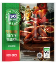 So Good Sosis Premium Hot and Spicy terdapat kandungan daging dada ayam yang lebih banyak, dengan kenikmatan ayam berkualitas, dan tekstur yang crunchy. Dapat dinikmati langsung tanpa membuka selongsong sosisnya, dikemas vacuum untuk menjaga bentuk, kesegaran, dan kualitas rasa. Bersiaplah memanjakan lidah dengan kelezatannya.