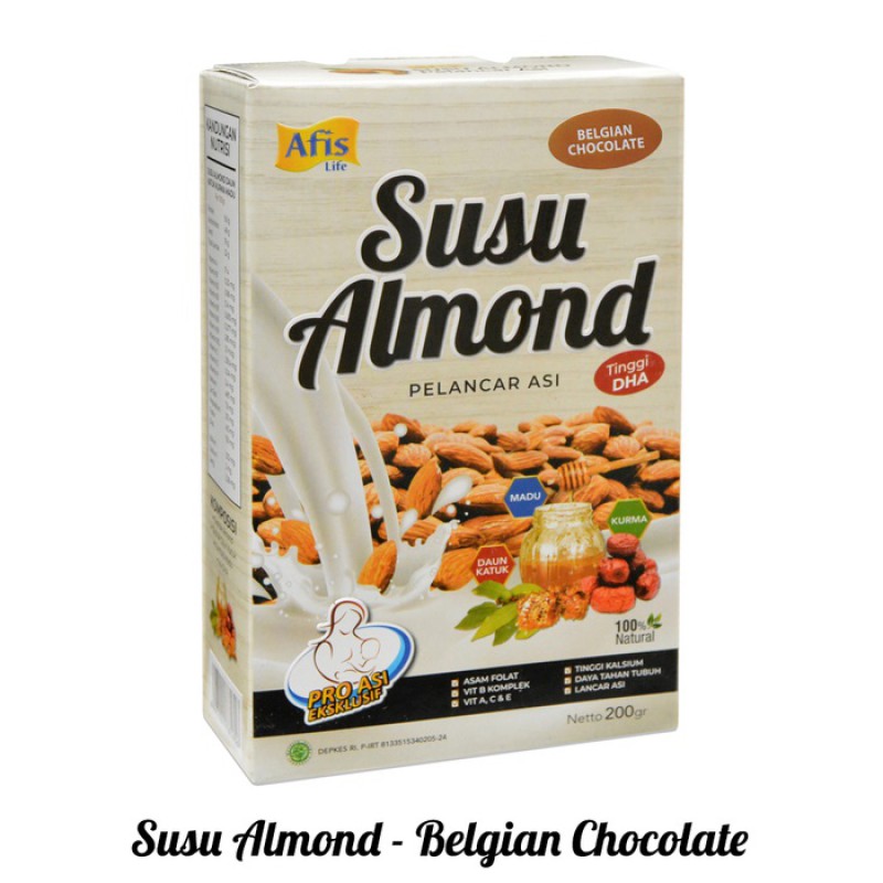 Afis Susu Almond pelancar Asi dengan ekstrak daun katuk, kurma dan madu, 100% natural, TINGGI DHA, mengandung asam folat, vitamin B komplek, vitamin A,C dan E, tinggi kalsium, meningkatkan daya tahan tubuh dan memperlancar ASI