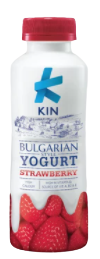 KIN Bulgarian Yogurt Strawberry minuman yogurt yang dibuat dengan bakteri baik Lactobacillus Bulgaricus yang diimpor langsung dari Bulgaria, memiliki rasa yang nikmat dan tidak asam.